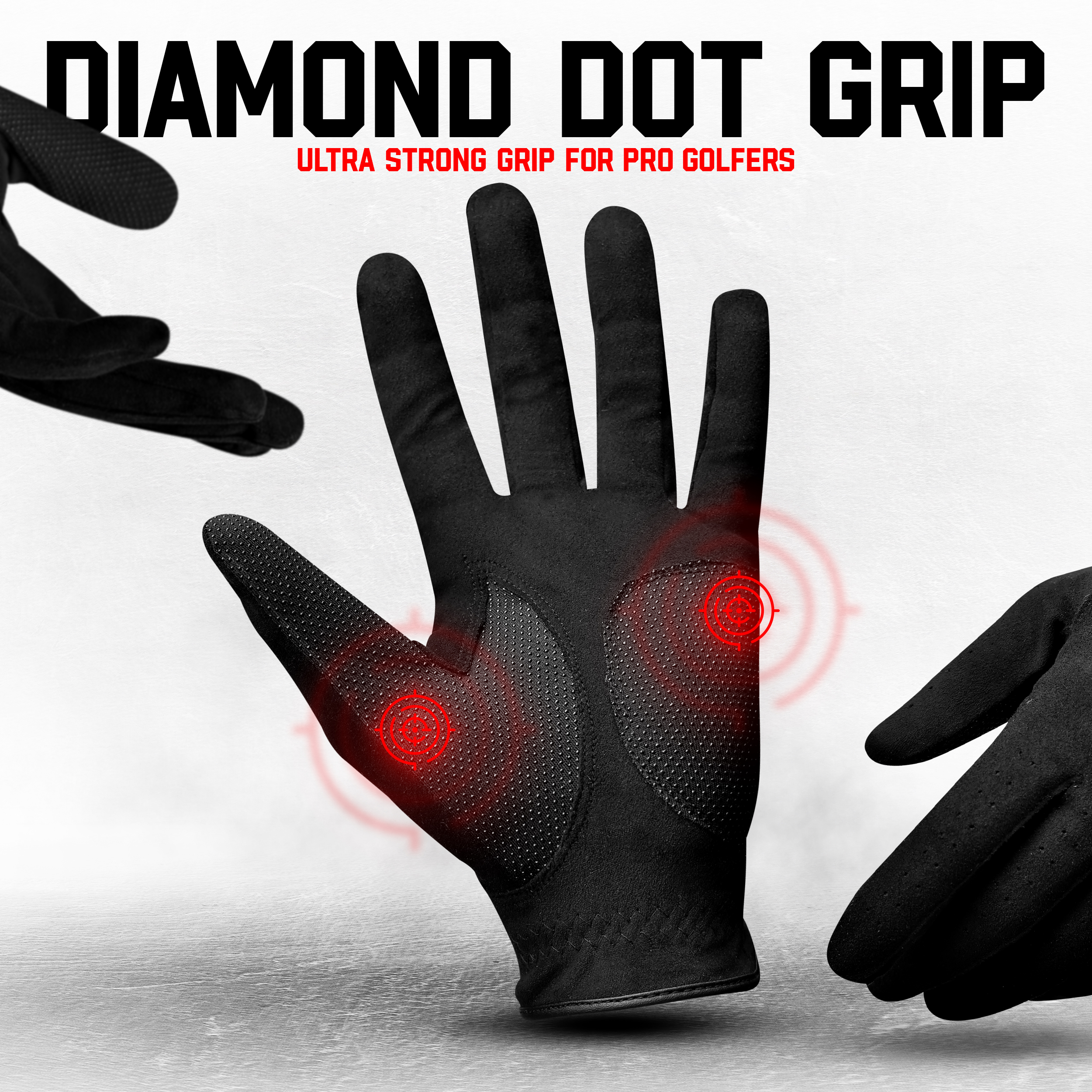 Genuine Baby Goat Leather for Extended Durability and provides a great feel in a thin golf glove